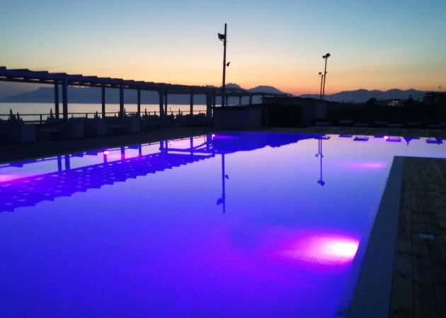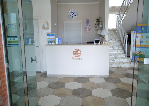 Infatti Sunrise è Hotel, bar, ristorante, pizzeria, spiaggia privata, piscina vista mare, WiFi. Inoltre, parcheggio gratuito, parco giochi, tabacchi.